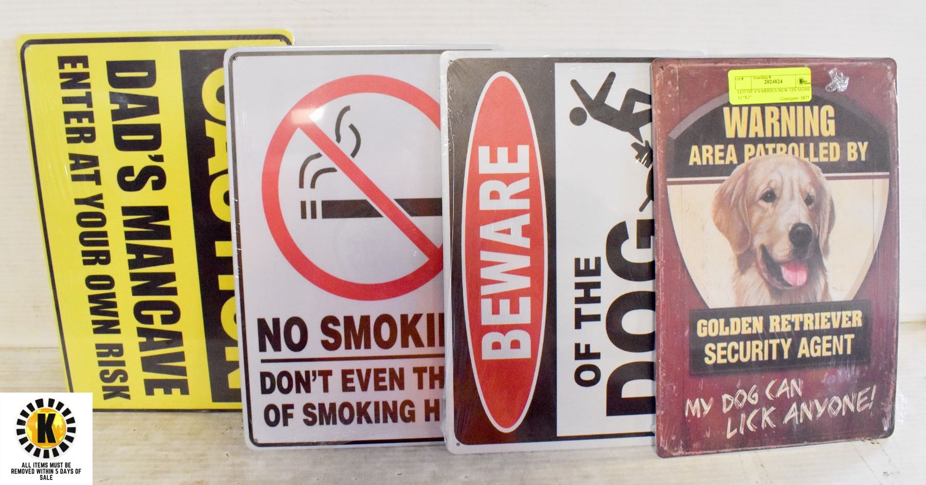LOT OF 4 VARIOUS NEW TIN SIGNS 11"X7"