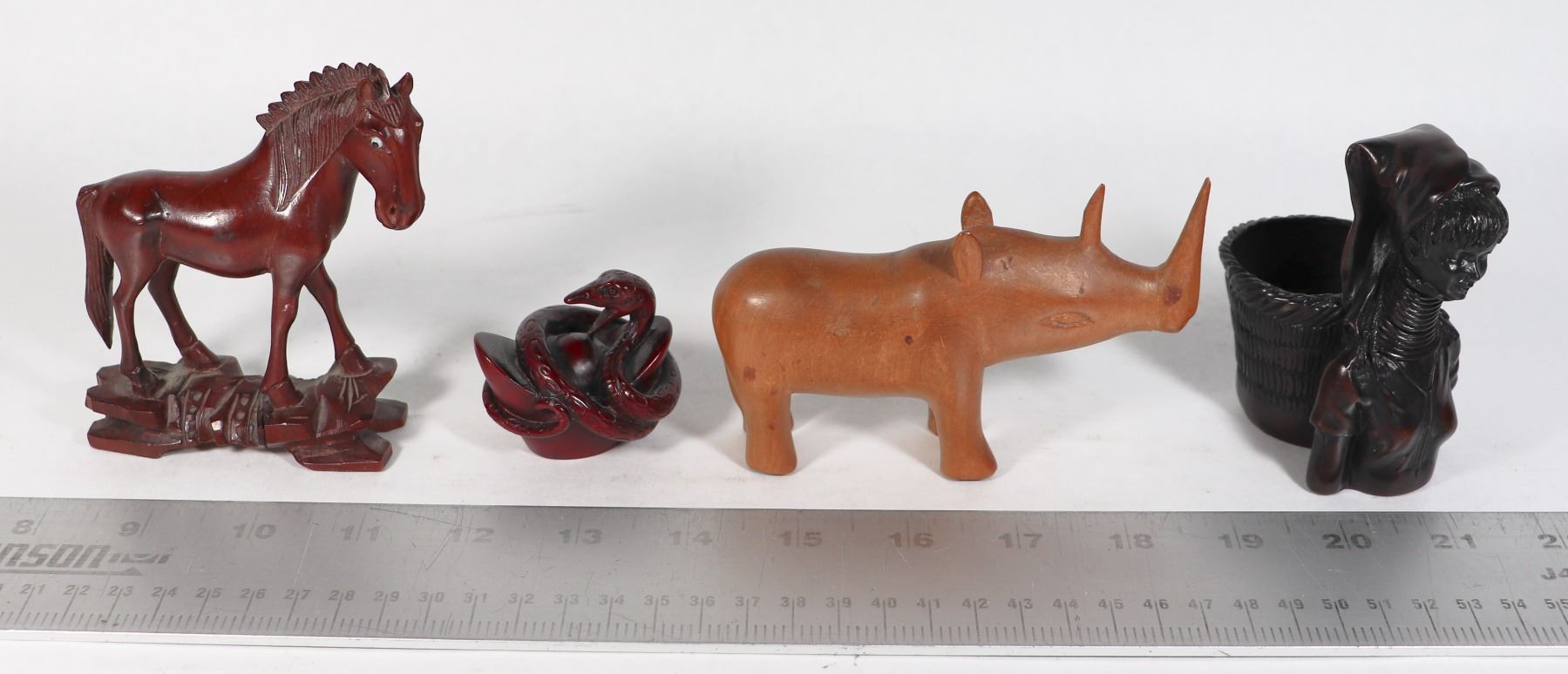 LOT OF 4 VARIOUS WOOD HAND CARVED ITEMS