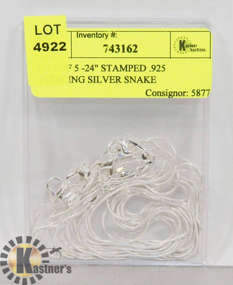 LOT OF 5 -24  STAMPED .925 STERLING SILVER SNAKE