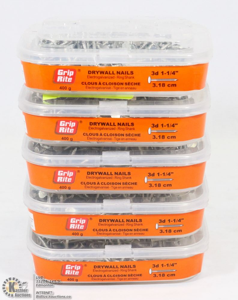 LOT OF 5 400G TUBS GRIP RITE DRYWALL NAILS