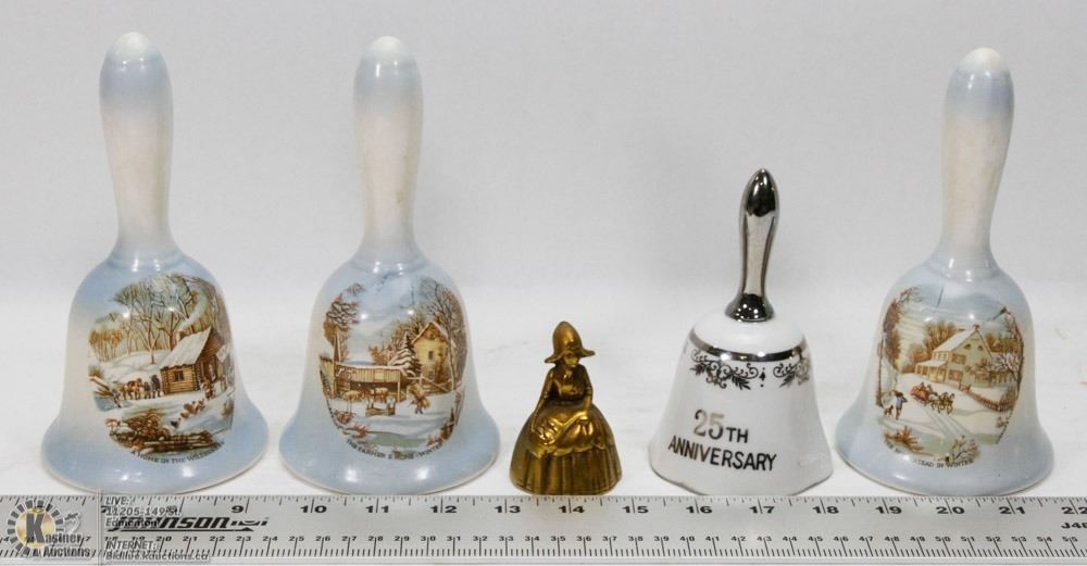 LOT OF 5 ASSORTED COLLECTIBLE BELLS INCL PORCELAIN