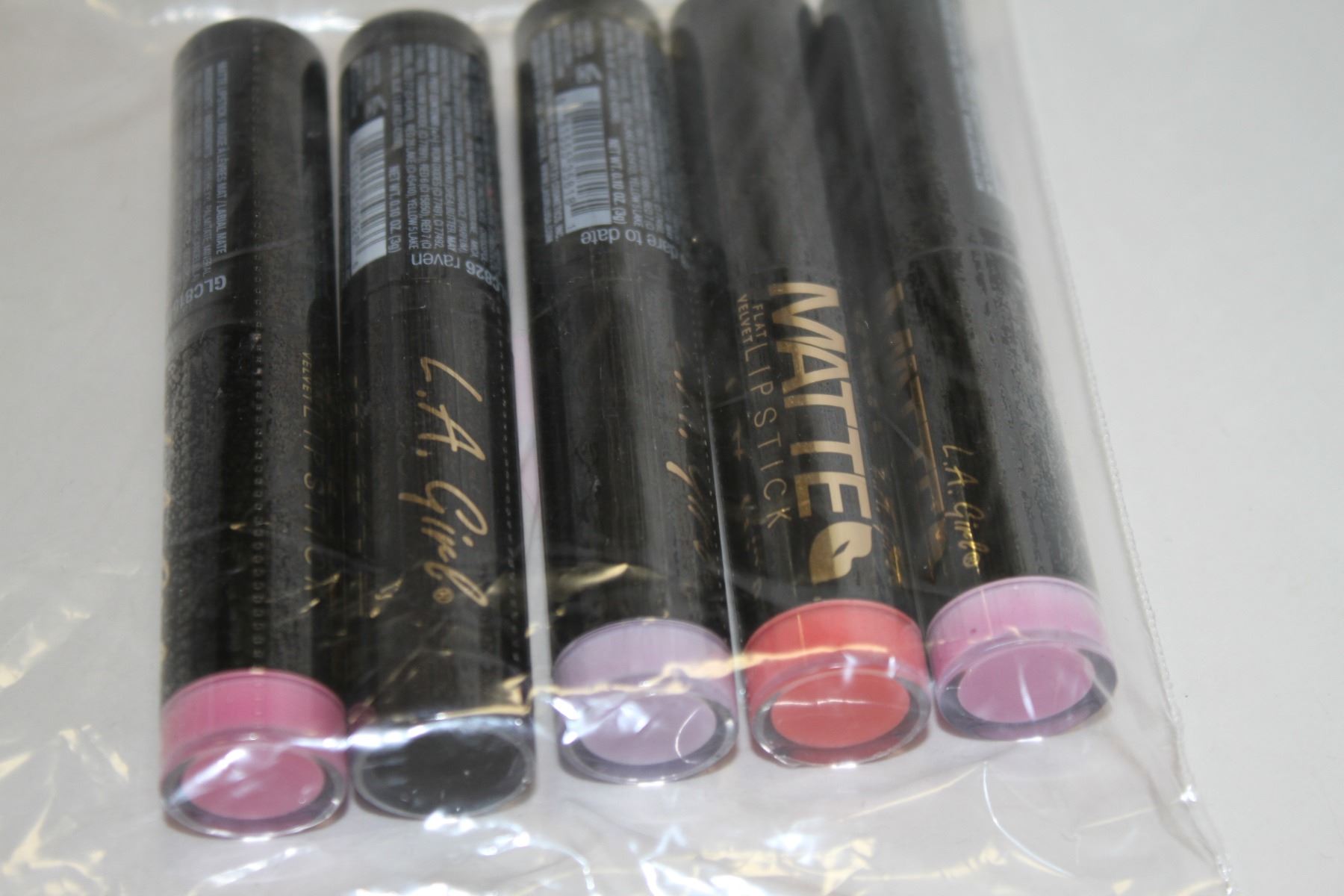 LOT OF 5 ASSORTED LA GIRL FLAT VELVET LIP STICKS