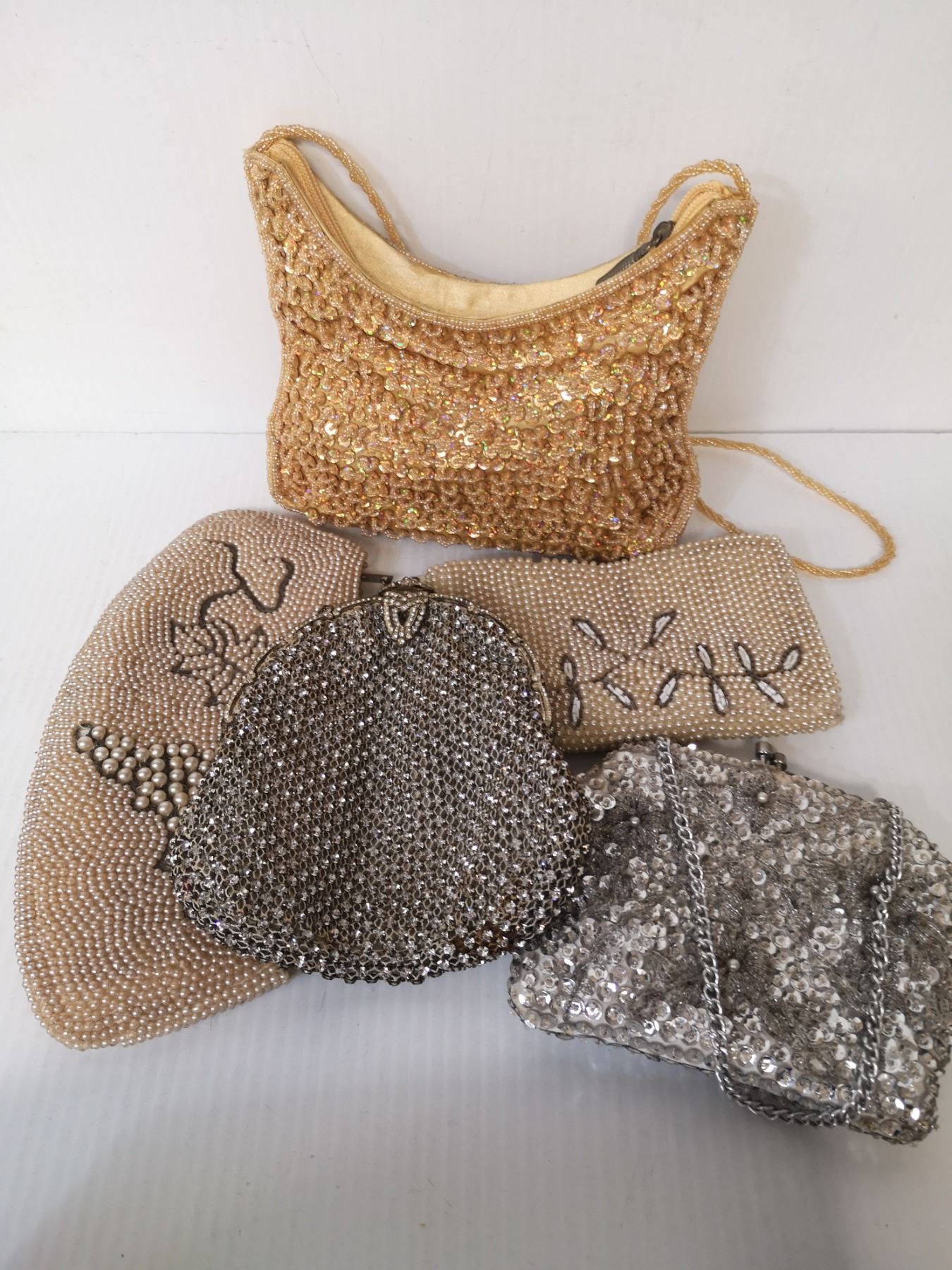 LOT OF 5 BEADED PURSES - 2 JAPANESE MADE, 1 MADE