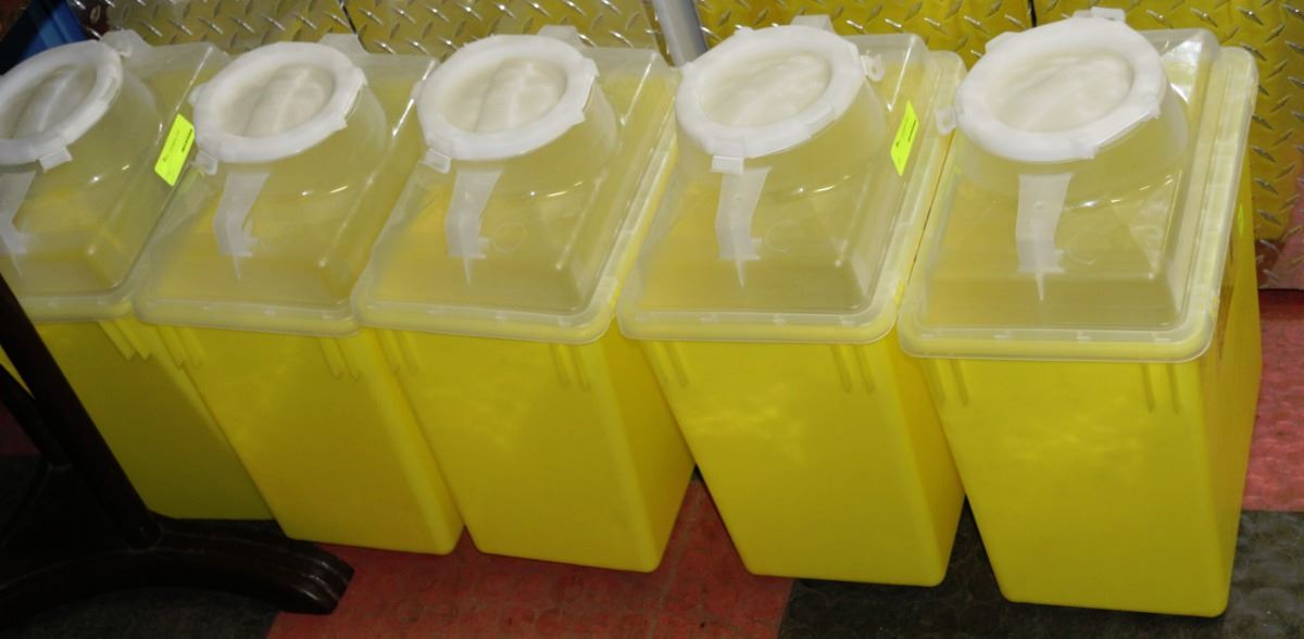 LOT OF 5 BIOHAZARD SHARPS COLLECTORS