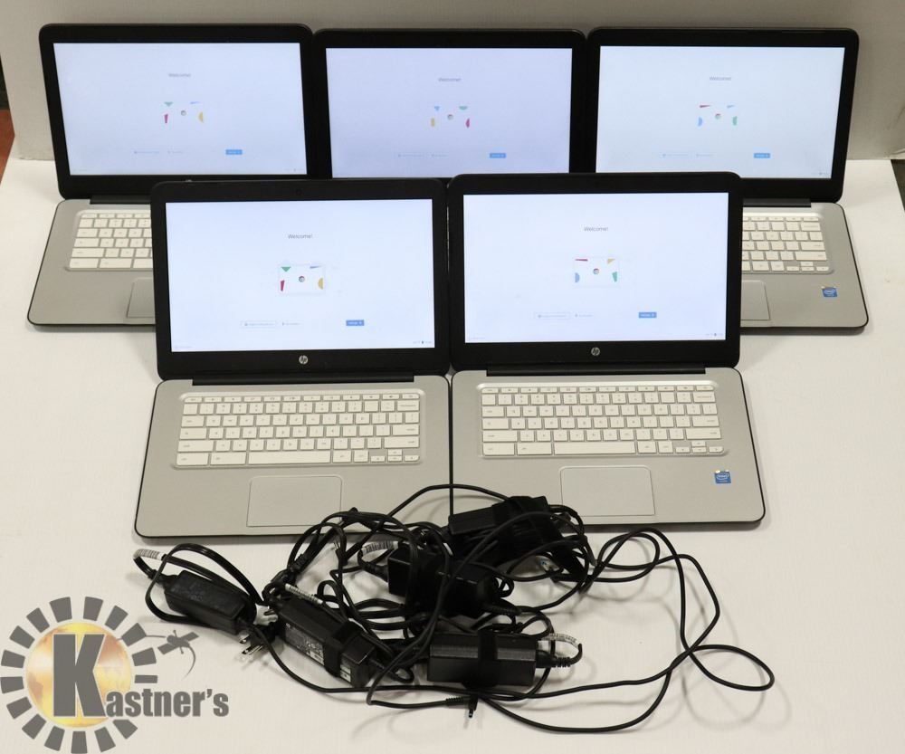 LOT OF 5 BLACK HP GOOGLE CHROMEBOOKS 14 W/ ADAPTER