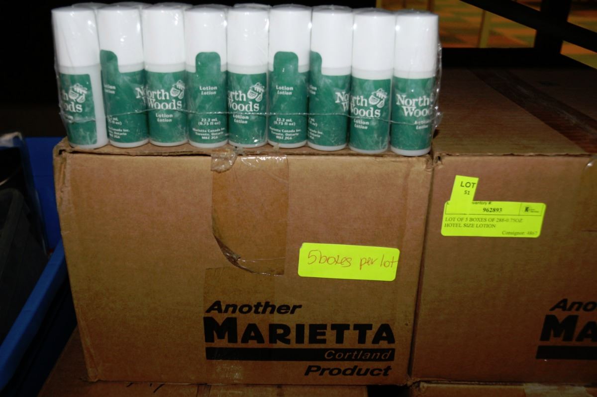 LOT OF 5 BOXES OF 288-0.75OZ HOTEL SIZE LOTION