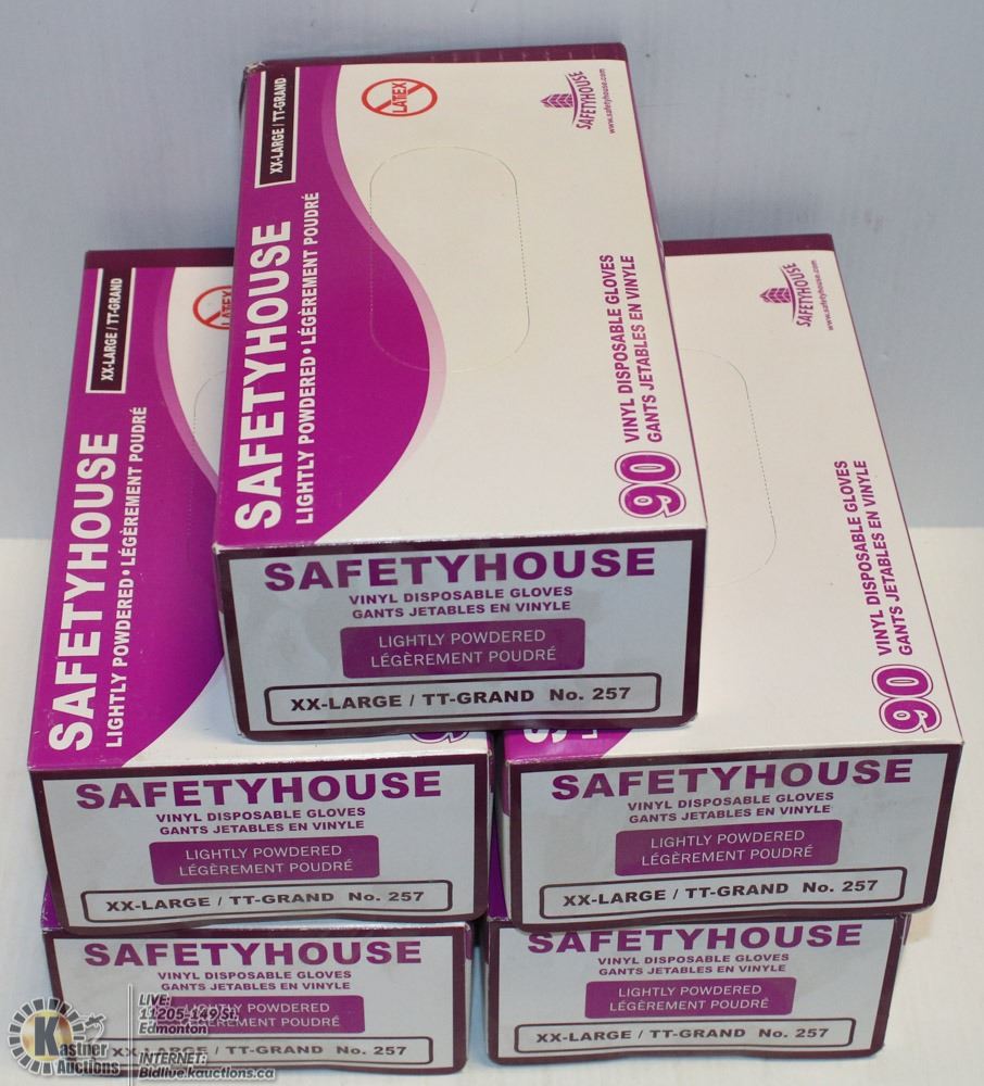 LOT OF 5 BOXES OF XXL DISPOSABLE GLOVES
