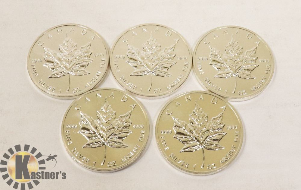 LOT OF 5 CANADIAN 1989 FINE SILVER .9999 $5 COIN.