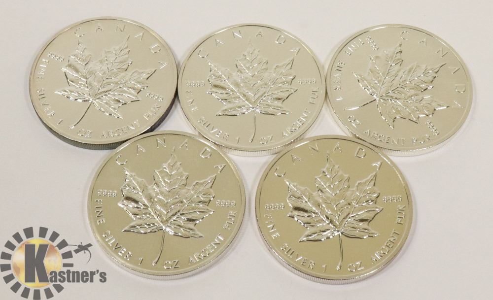 LOT OF 5 CANADIAN 1989 FINE SILVER .9999 $5 COIN.