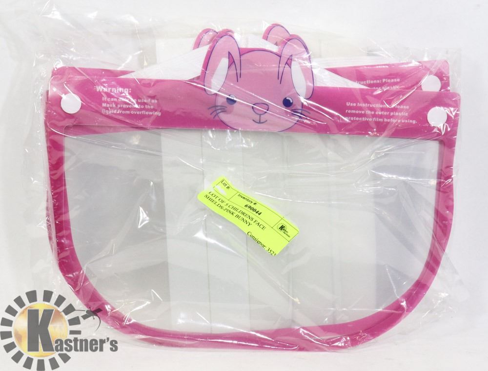 LOT OF 5 CHILDRENS FACE SHIELDS- PINK BUNNY