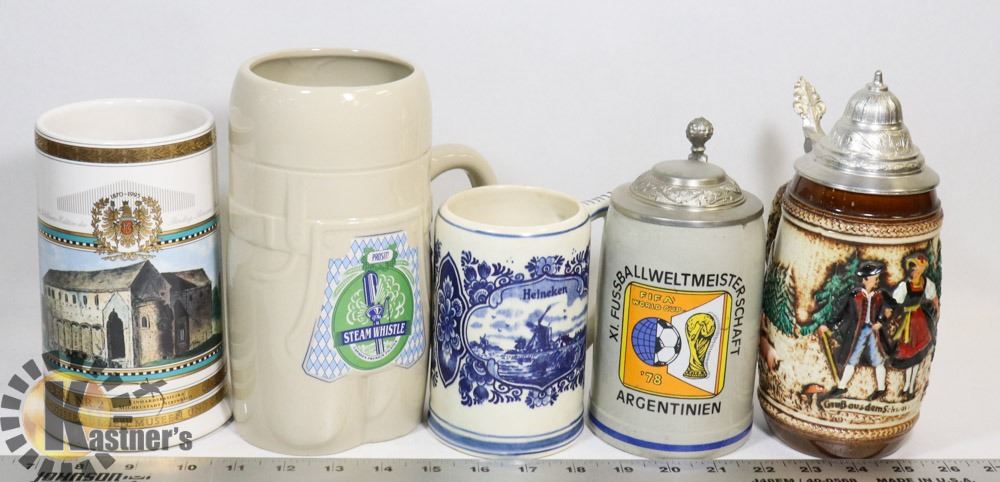 LOT OF 5 COLLECTIBLE BEER STEINS