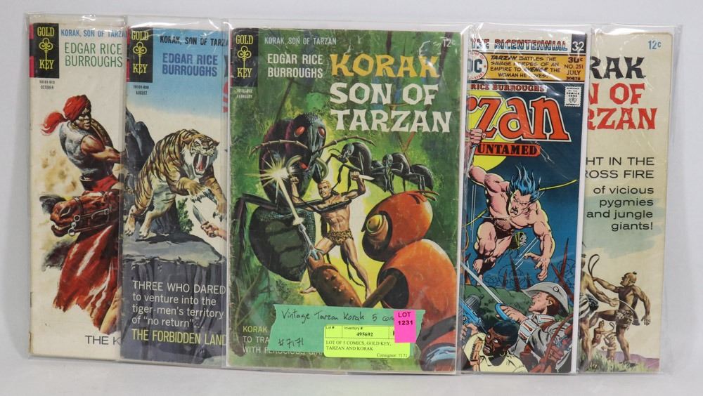 LOT OF 5 COMICS, GOLD KEY, TARZAN AND KORAK