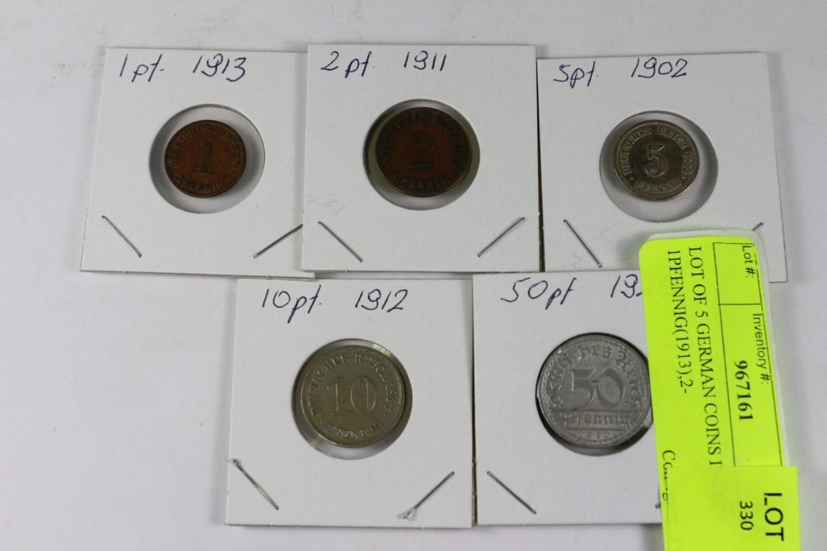 PFENNIG(1911),5 PFENNIG(1902),10 PFENNIG (1912) AND 50 PFENNIG (1920)