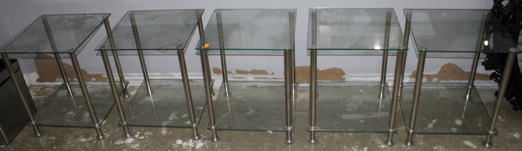 LOT OF 5 GLASS AND CHROME SIDE TABLES