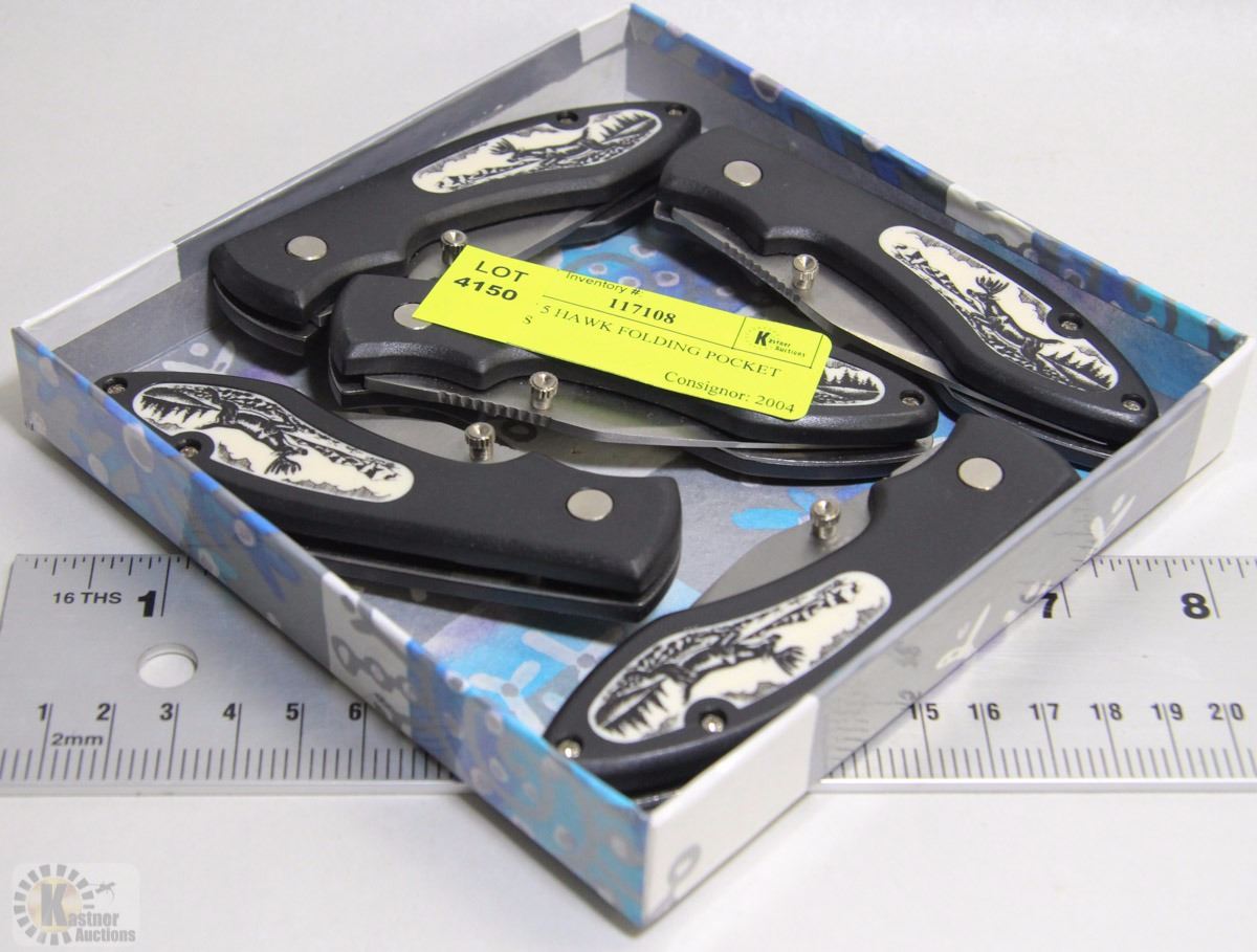 LOT OF 5 HAWK FOLDING POCKET KNIVES