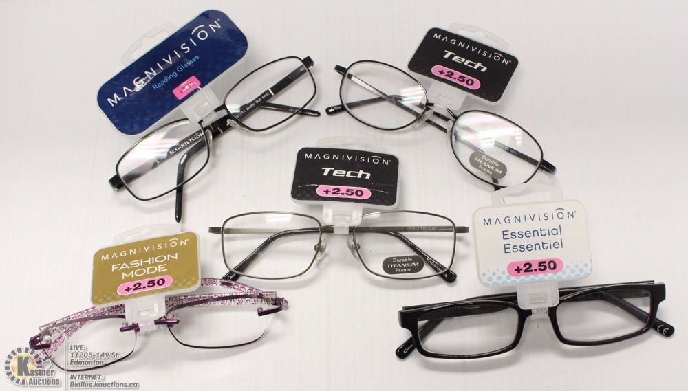 LOT OF 5 MAGNIVISION READING GLASSES STRENGTH +2.5