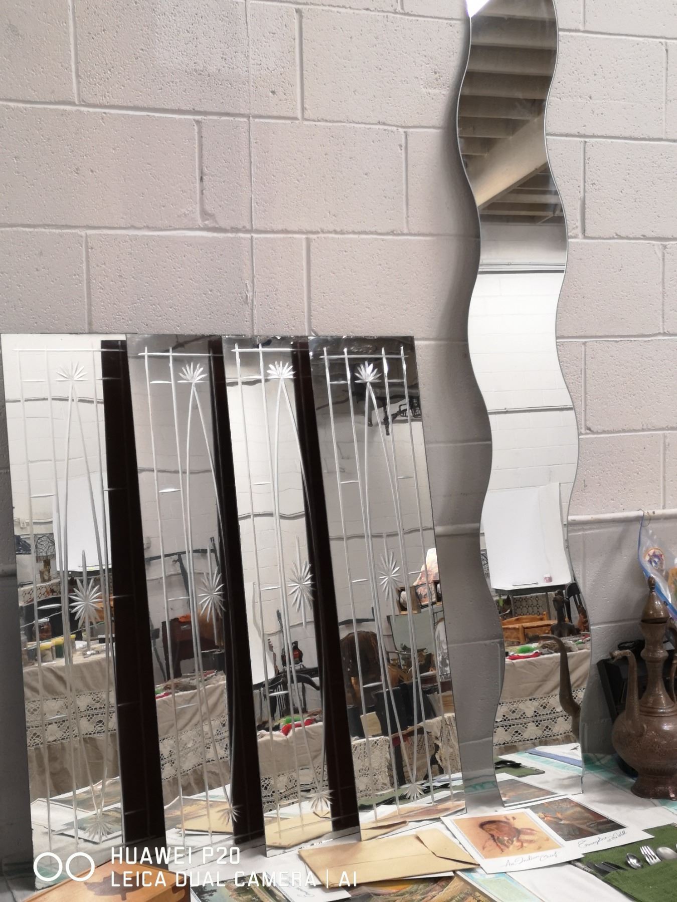 TALL MIRROR MEASURES 64" TALL. DESIGNED MIRRORS MEASURE 3FT X 9 11/16"