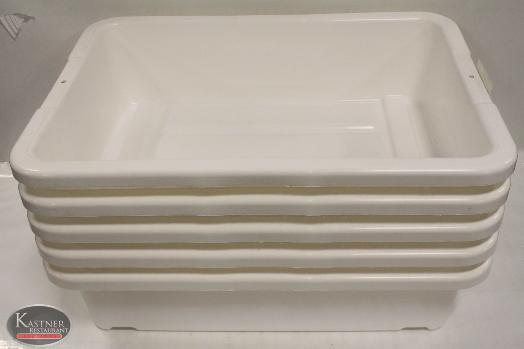 LOT OF 5 NEW 5  DEEP WHITE TOTE BOXES / BUS PANS