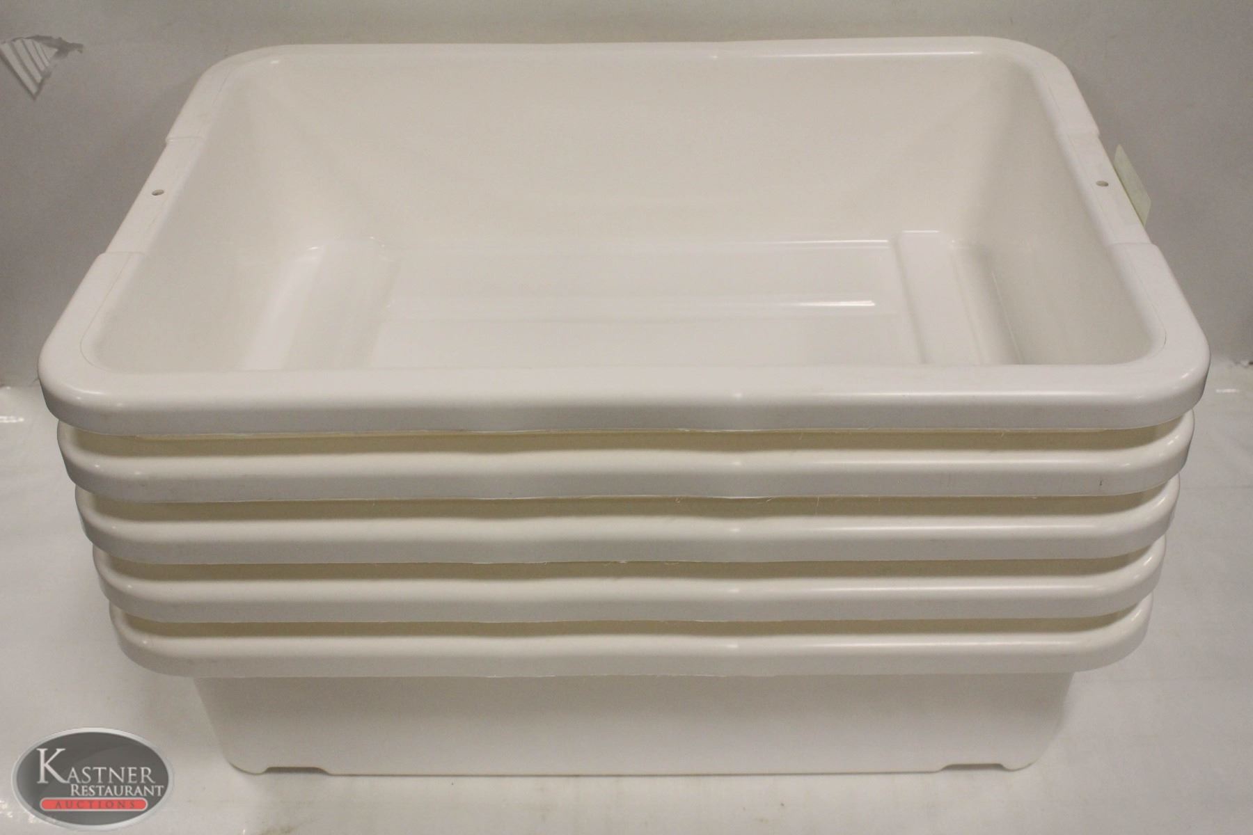 LOT OF 5 NEW 5" DEEP WHITE TOTE BOXES / BUS PANS