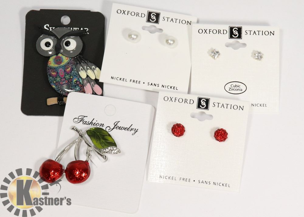 BROOCHES & 3 PAIRS OF EARRINGS - JEWELRY