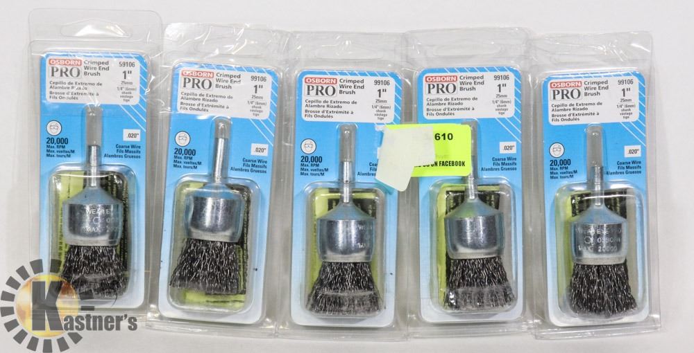 LOT OF 5 OSBORN PRO 1  CRIMPED WIRE END BRUSHES