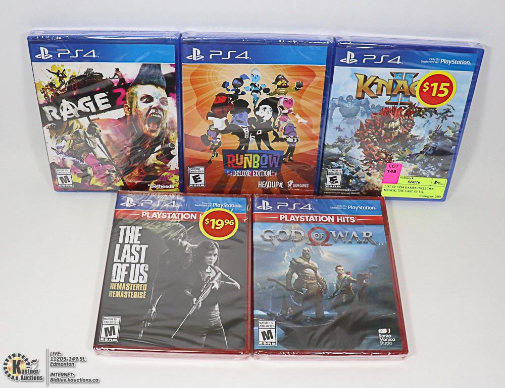 LOT OF 5 PS4 GAMES INCLUDES: KNACK, THE LAST OF US