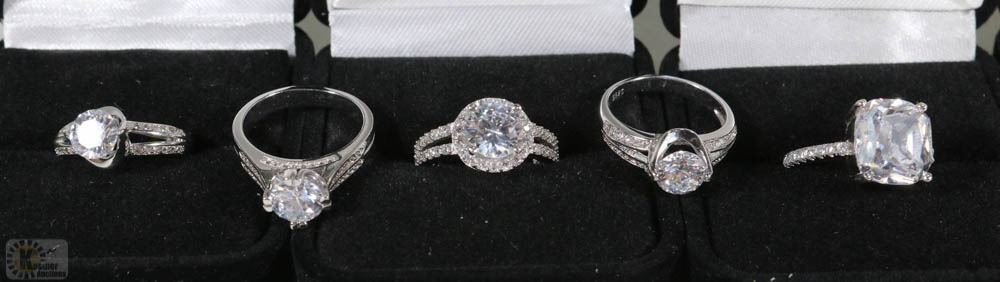 LOT OF 5 STAMPED S925 ENGAGEMENT RINGS SIZES INCL