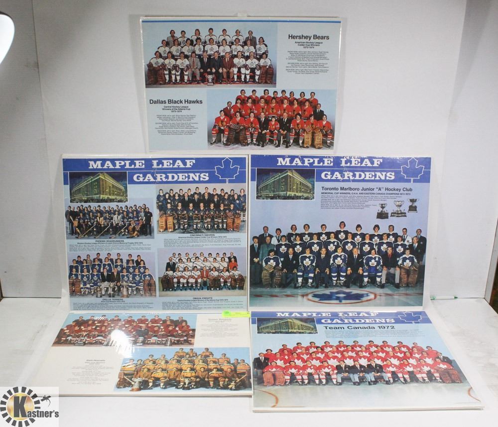 LOT OF 5 VINTAGE 70'S HOCKEY PICTURES ON