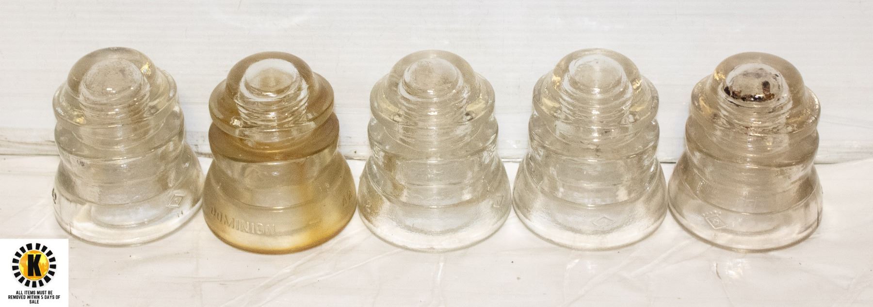 LOT OF 5 VINTAGE GLASS INSULATORS
