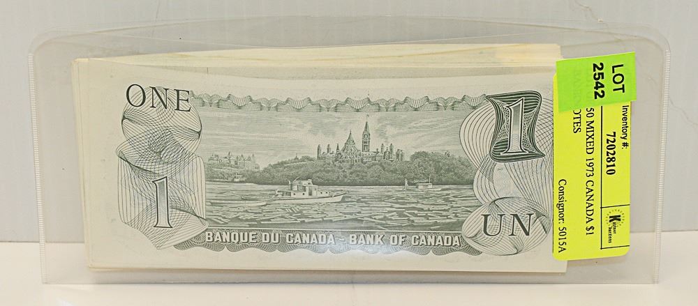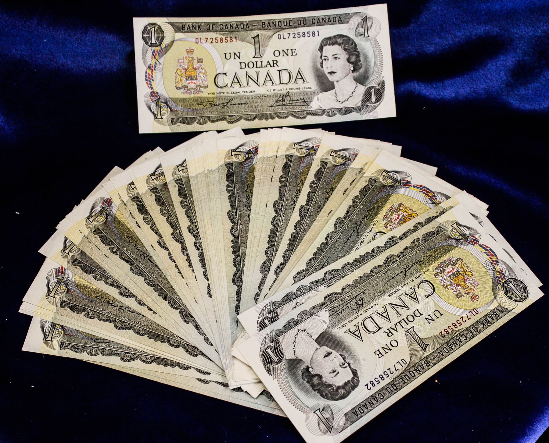 LOT OF 50 MIXED 1973 CANADA $1 BANKNOTES