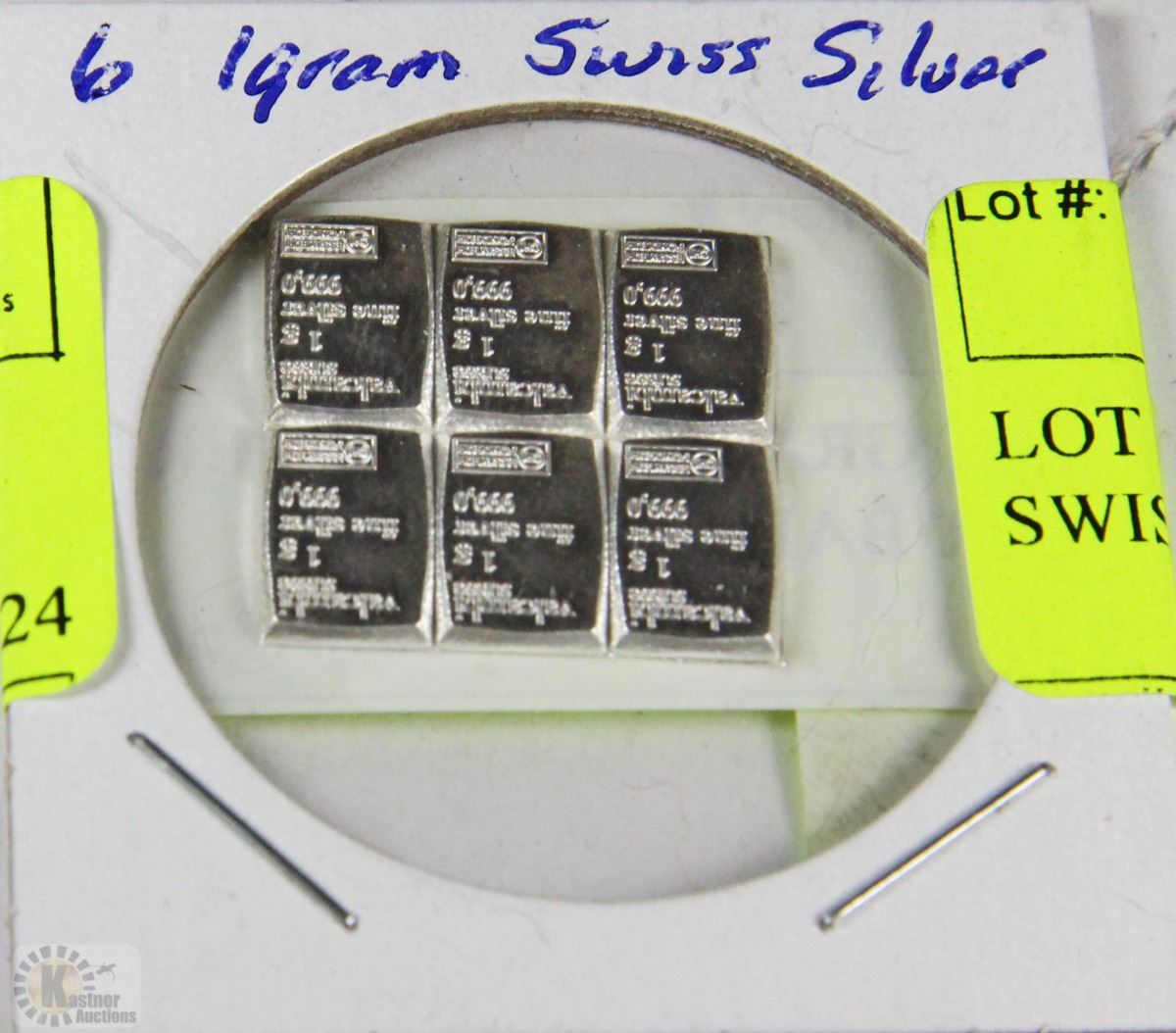 LOT OF 6 1 GRAM PURE SILVER SWISS ART BARS