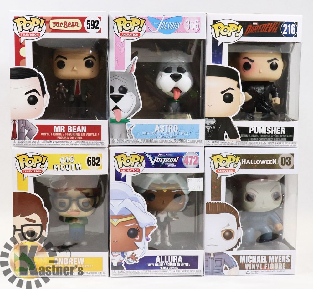 LOT OF 6 ASSORTED FUNKO POP VINYL FIGURES.