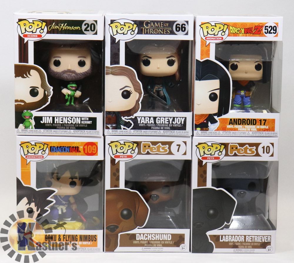LOT OF 6 ASSORTED FUNKO POP VINYL FIGURES.