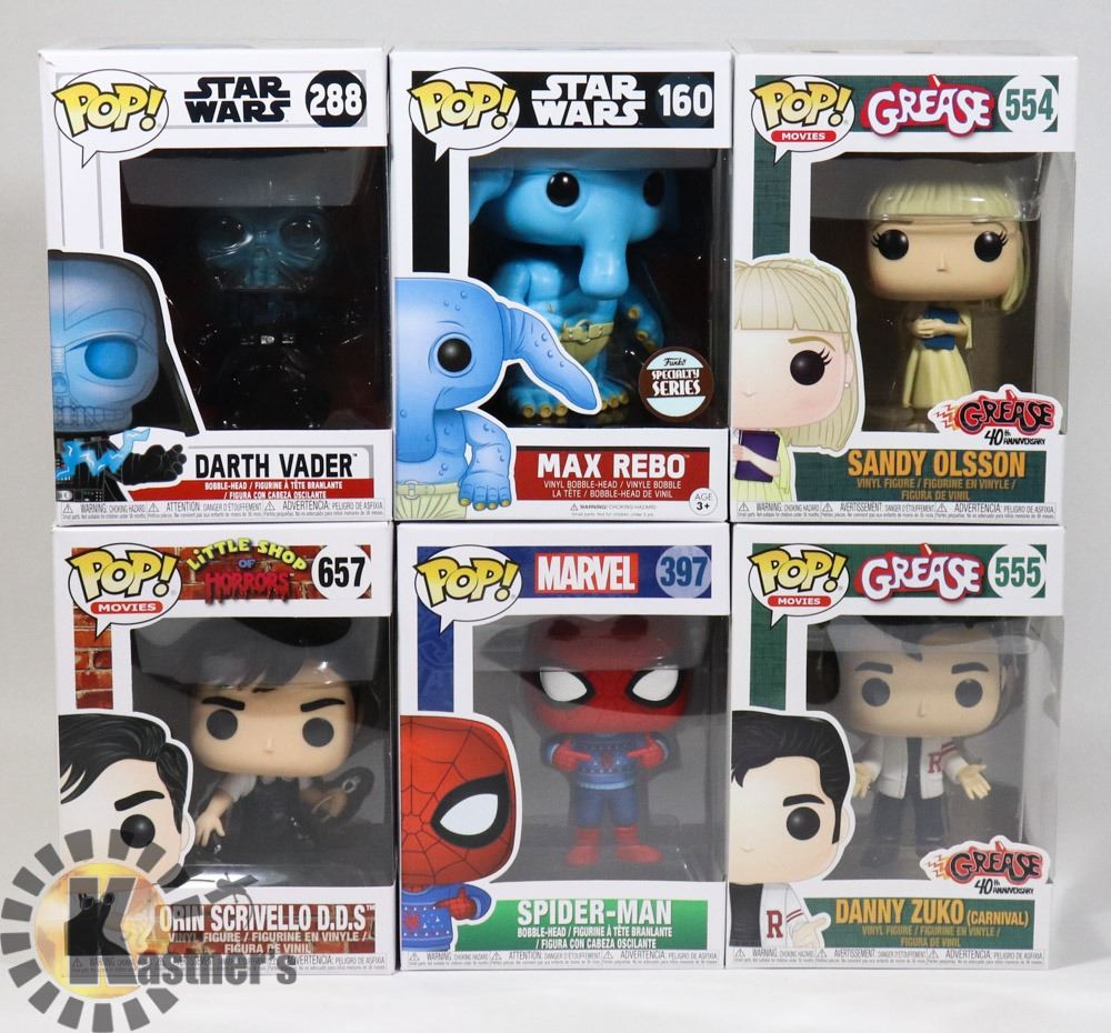 LOT OF 6 ASSORTED FUNKO POP VINYL FIGURES.
