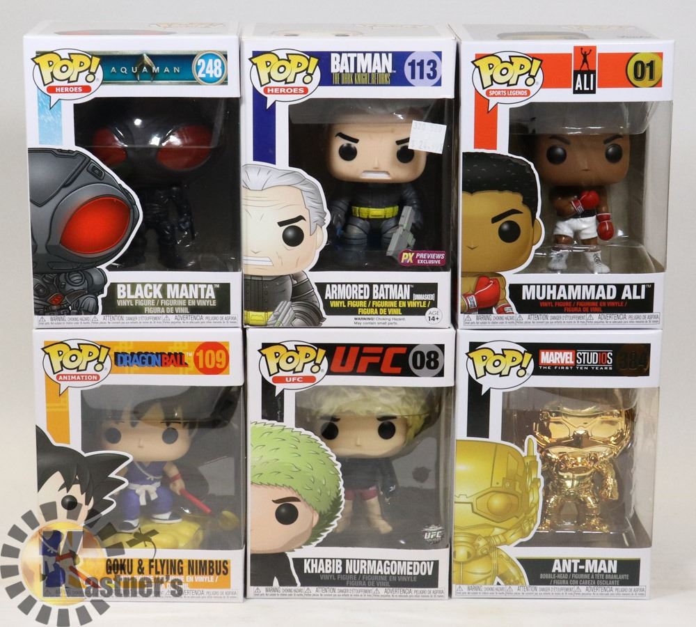 LOT OF 6 ASSORTED FUNKO POP VINYL FIGURES.