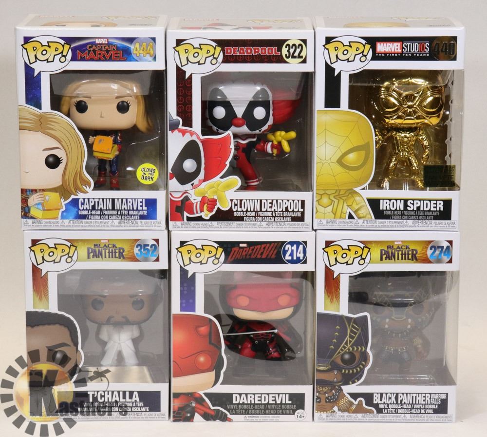 LOT OF 6 ASSORTED FUNKO POP VINYL FIGURES.