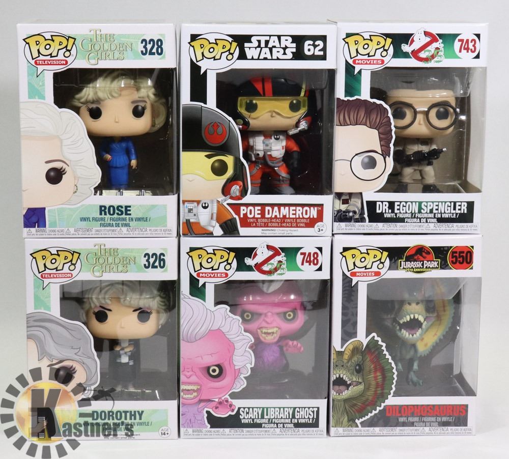 LOT OF 6 ASSORTED FUNKO POP VINYL FIGURES.