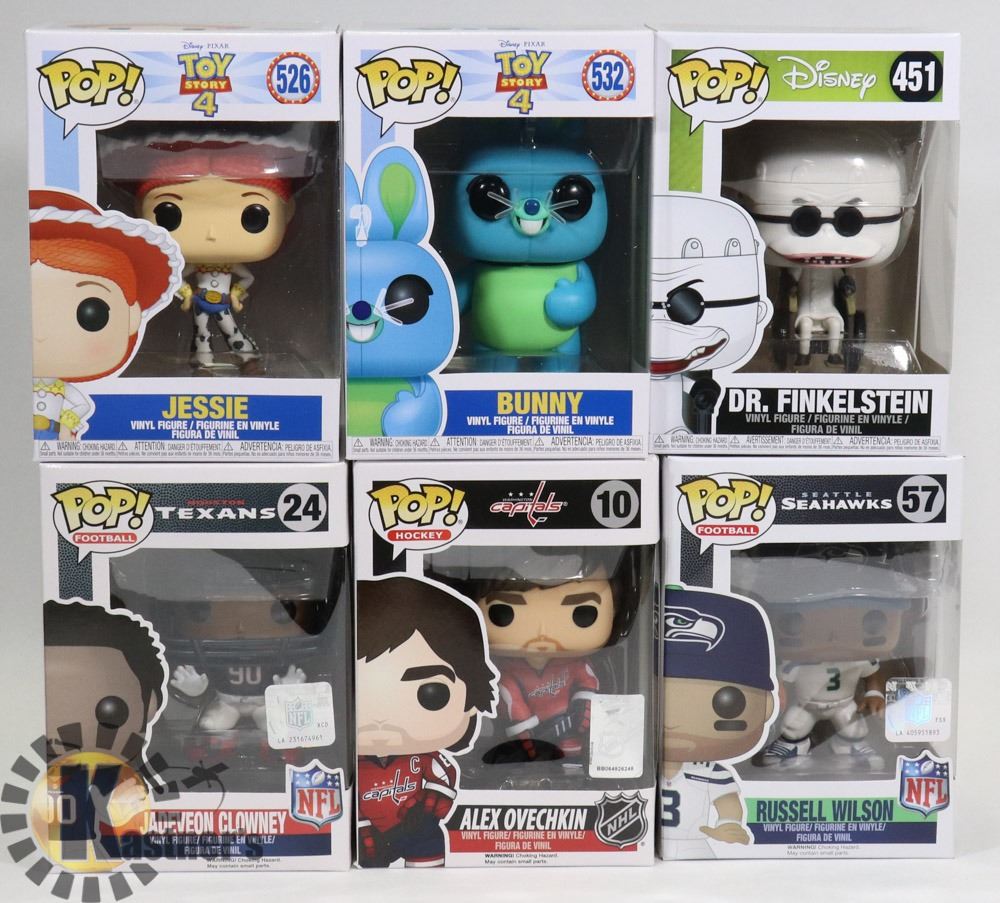LOT OF 6 ASSORTED FUNKO POP VINYL FIGURES.