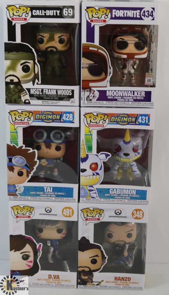 LOT OF 6 ASSORTED FUNKO POPS: GAMES & ANIMATION