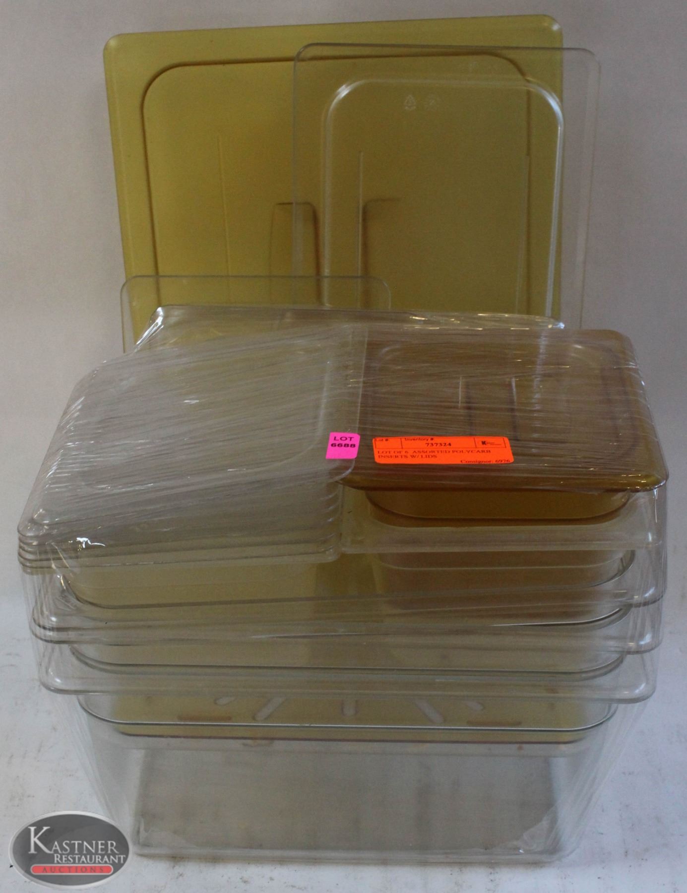 LOT OF 6 ASSORTED POLYCARB INSERTS W/ LIDS