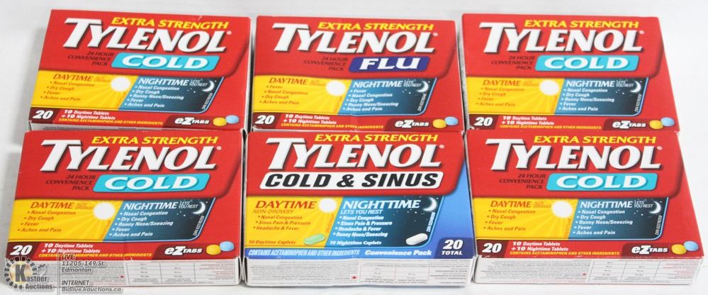 LOT OF 6 ASSORTED TYLENOL COLD AND FLU MEDICINES