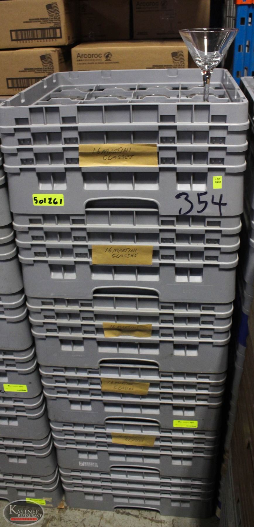 LOT OF 6 DISHWASHER TRAYS W/ MARTINI GLASSES
