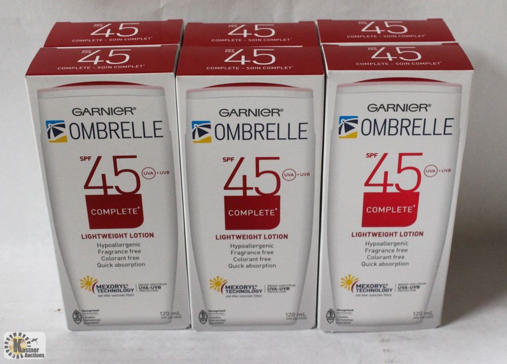 LOT OF 6 GARNIER OMBRELLE SPF45 LIGHTWEIGHT LOTION