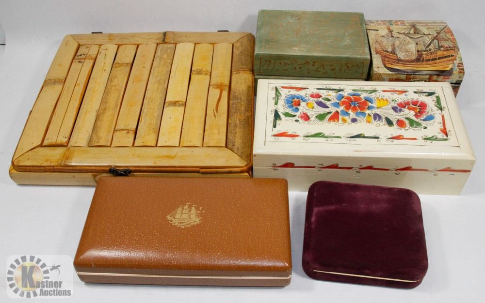 VINTAGE AVON, FAUX LEATHER, BAMBOO, WOOD, ETC. HOUSEHOLD.