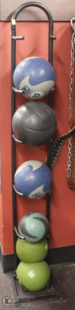 LOT OF 6 MEDICINE BALLS - RACK INCLUDED