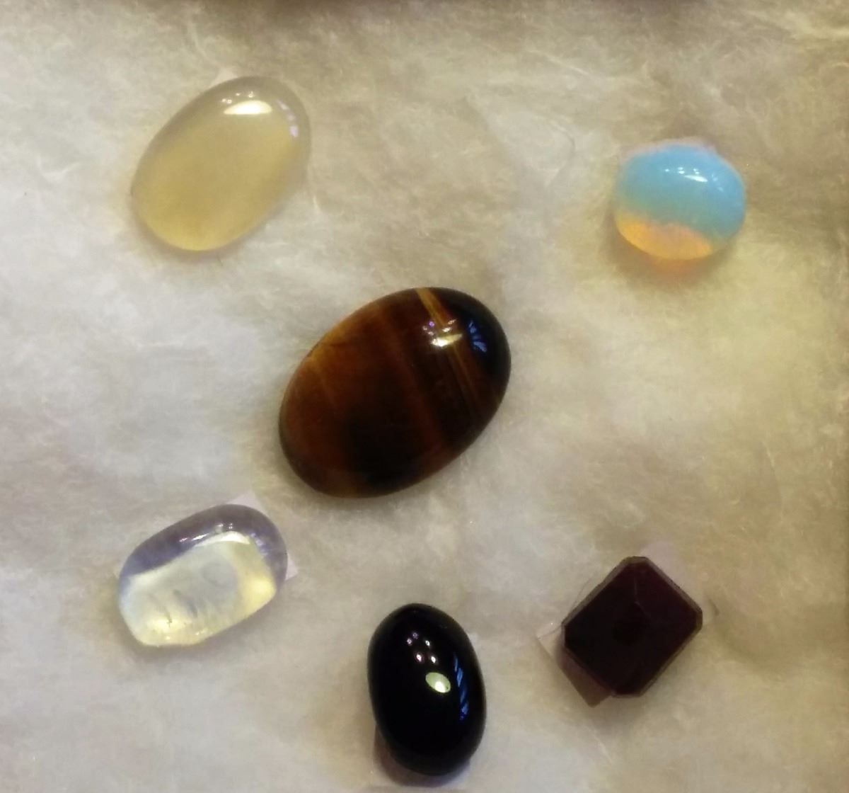 25.5 CT TIGERS EYE, 3 OPALINE STONES TCW 30 CT & 11.5 CT BLACK AGATE