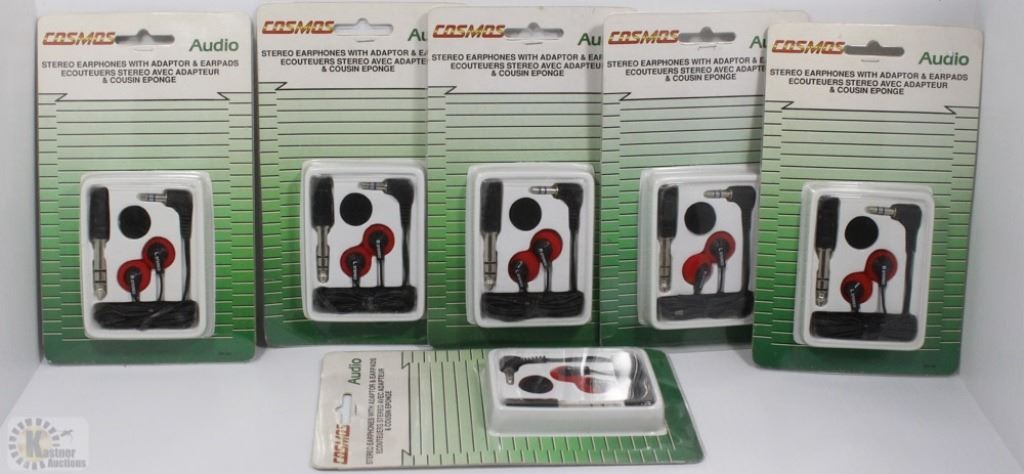 LOT OF 6 NEW STEREO EARPHONES W/ADAPTER & EARPADS