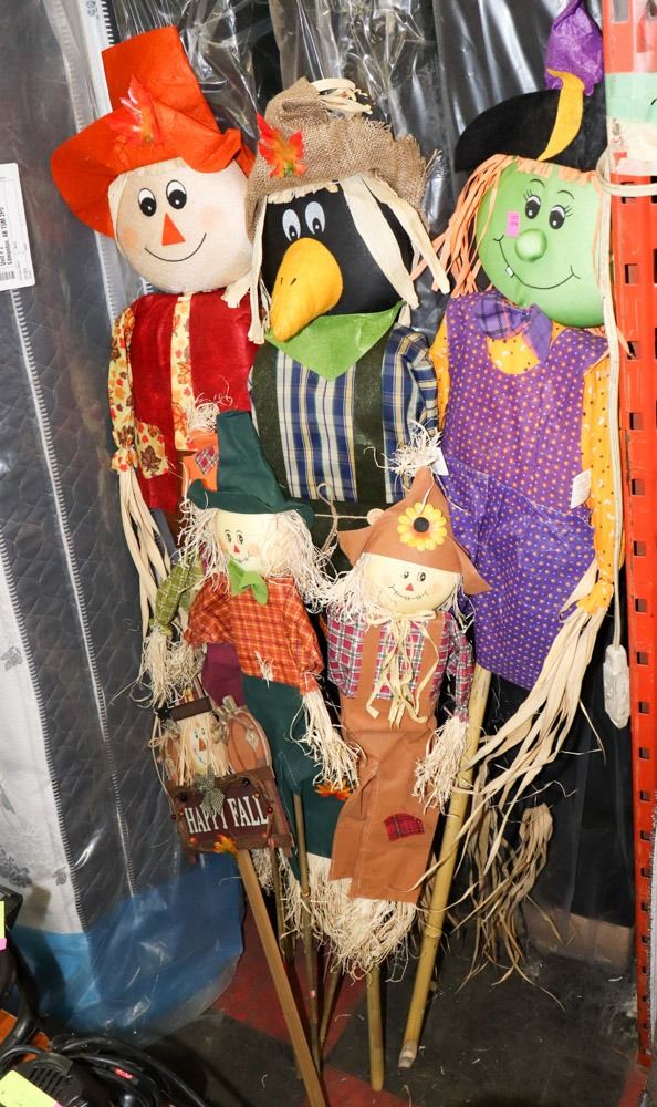 LOT OF 6 SCARECROWS AND HALLOWEEN DECORATIONS