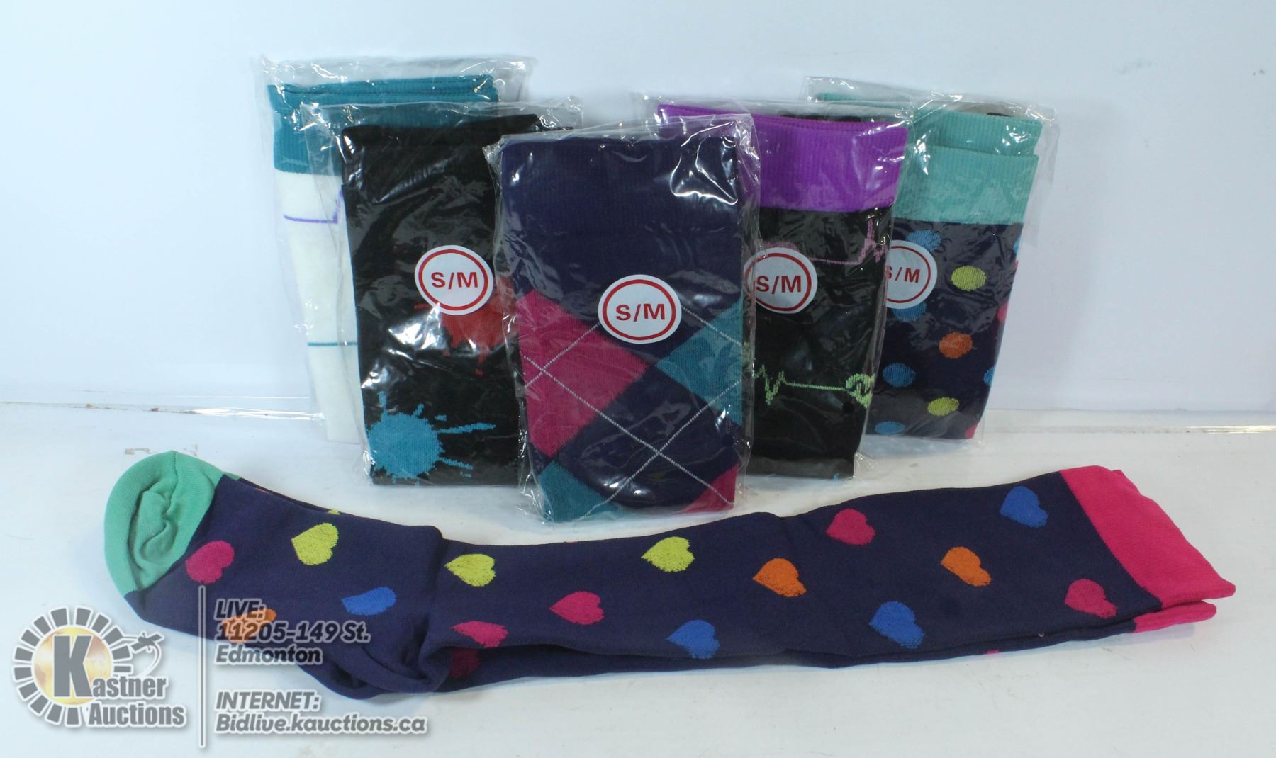 LOT OF 6 SIZE SMALL COMPRESSION SOCKS.