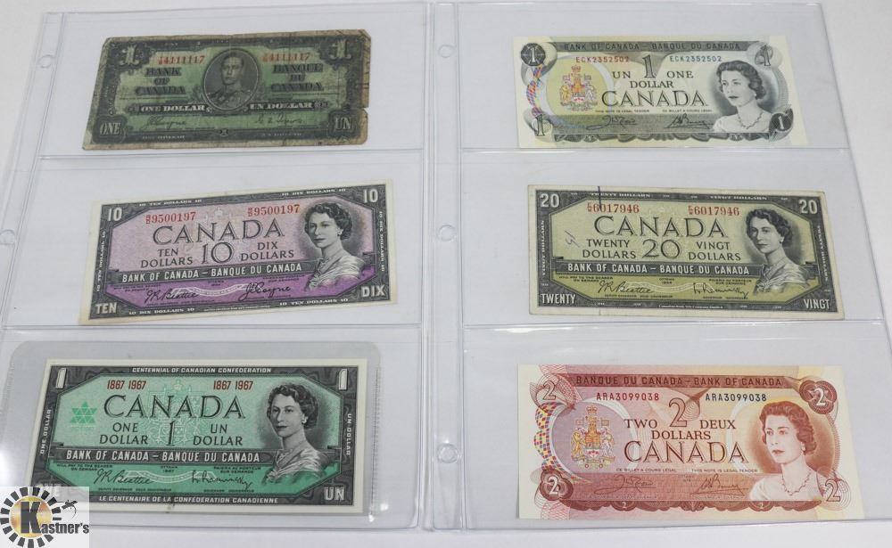 LOT OF 6 VARIOUS OLD CANADA BANK NOTES.